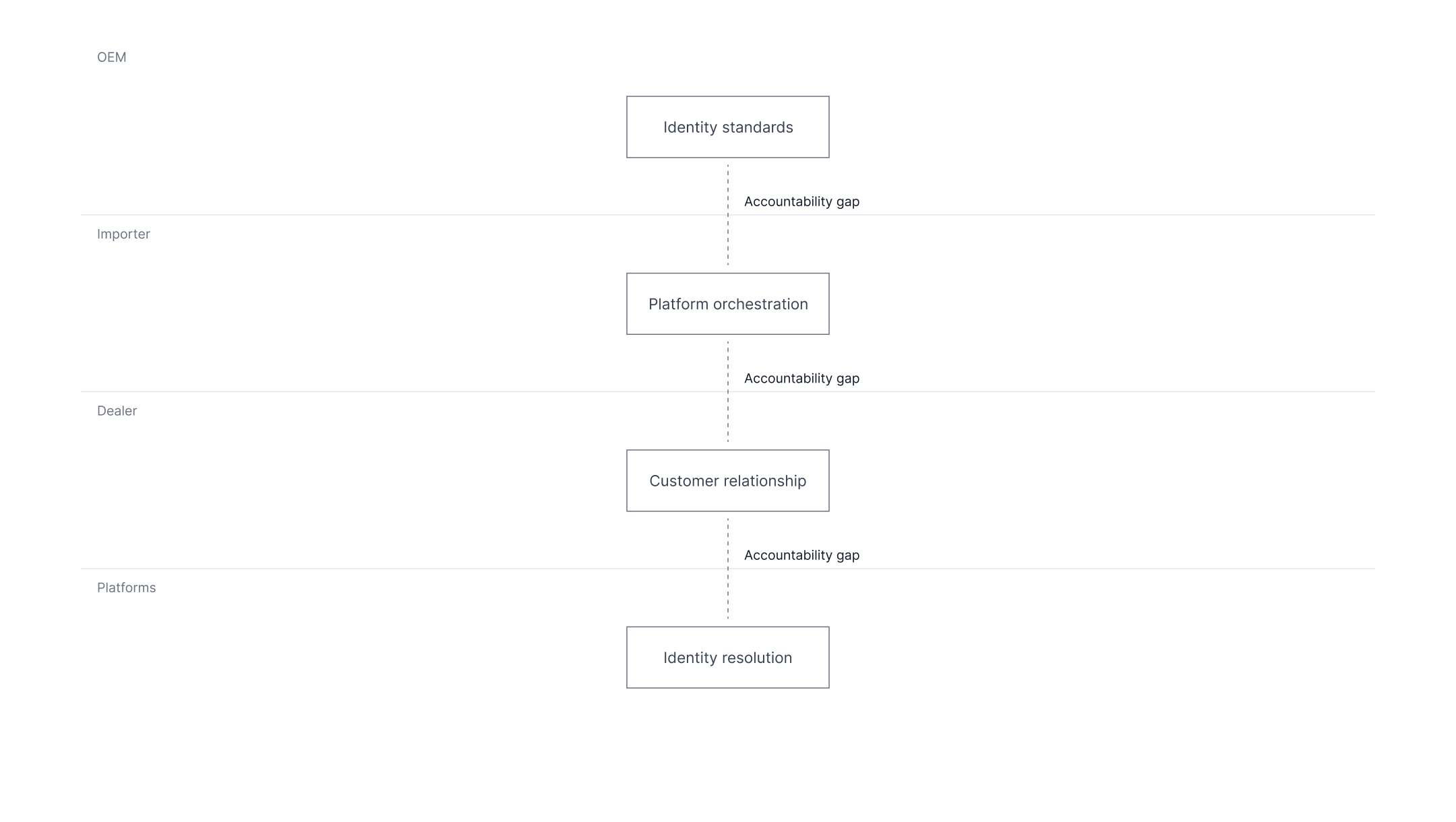 Accountability gaps across OEM, importer, dealer, and platform roles